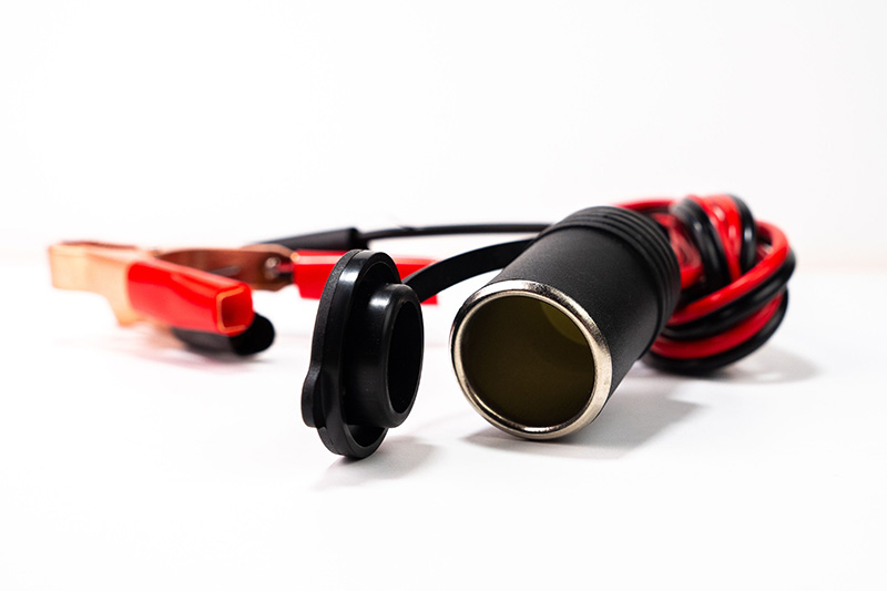 - Battery Alligator Clamp Extension Cable with Female Socket are used to connect to the battery clips on your car, motorcycle, camping trailer, boat, ATV, RV battery supply power for air compressor, air pump, car fridge, car cooler, vacuum, phone charger, fan and other 12v device.