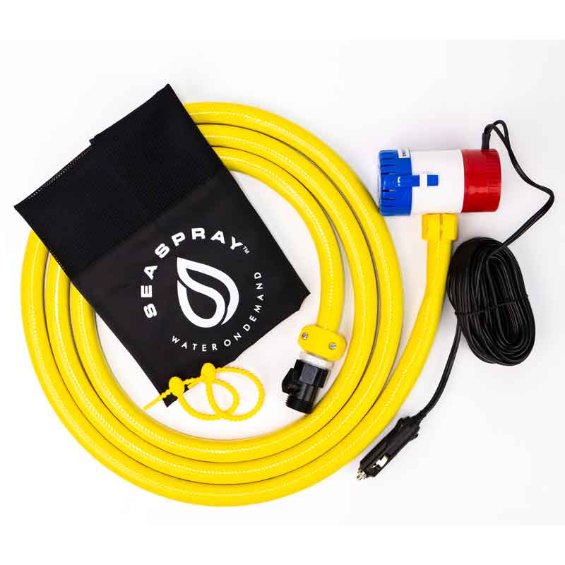 Sea Spray gets the job done, its portable, lightweight and durable, made of 100% scratch-resistant, high quality materials, delivering up to 360 US gallons of water per hour using the earth’s natural resource fresh or saltwater. As an optional accessory, the portable Sea Spray 12v Power Pack Kit supplies a 12v power source giving you access to any water source located anywhere in the world. Once plugged in to any 12v cigarette lighter adapter, simply drop the Sea Spray’s powerful 18 psi pump in to any body of water with a minimum depth between 1”- 3”inches and you now have a device that will wash your boat, pump out that dirty bilge water, clean fish or shellfish on your swim step platform or pump fresh lake or river water in to any water container easily and without spillage at the drop of a hat!