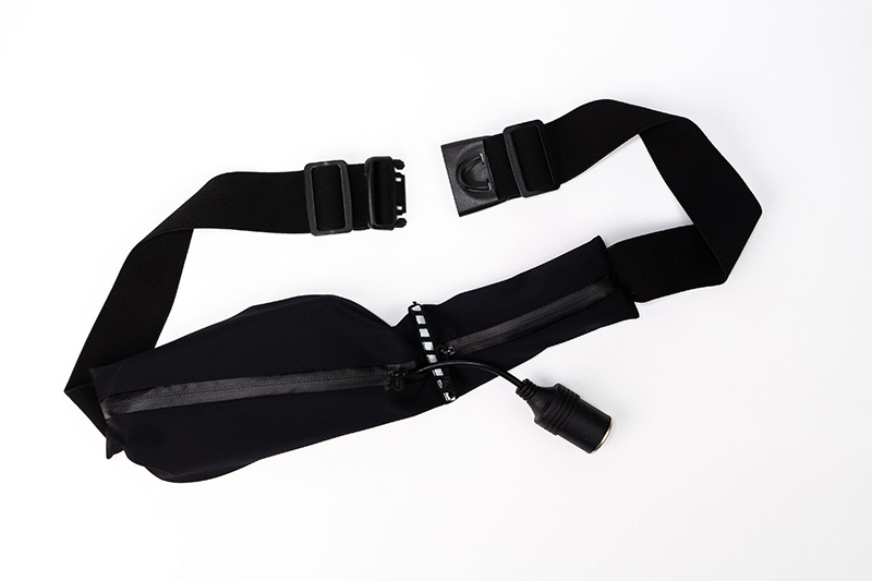 Sea Spray Water Resistant 12 volt power supply belt shoulder harness with Adjustable Elastic Strap fits 22”-50” waist and durable quick release buckle (Items shown in photographs are examples of use and not included)