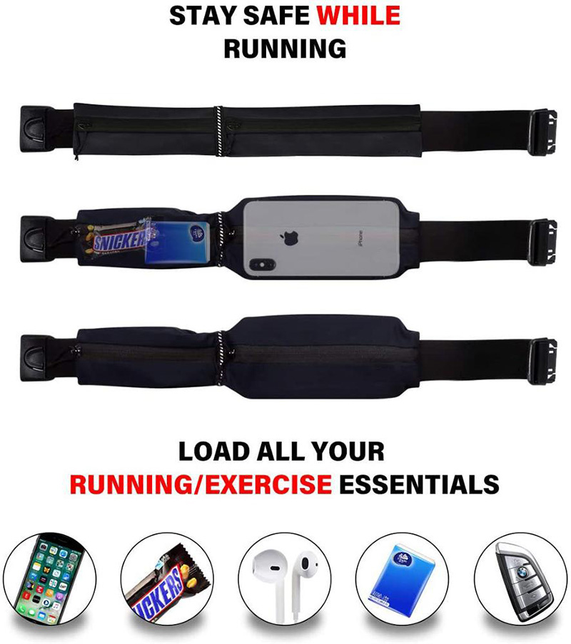 - Premium quality constructed with ultra-light, breathable, skin-friendly and odorless material; Smooth also durable zippers; Super stretchy adjustable strap, this waist pack is really comfortable to ware and easy to access.